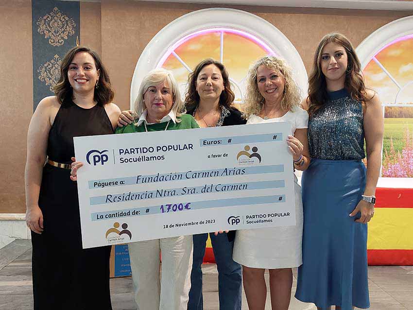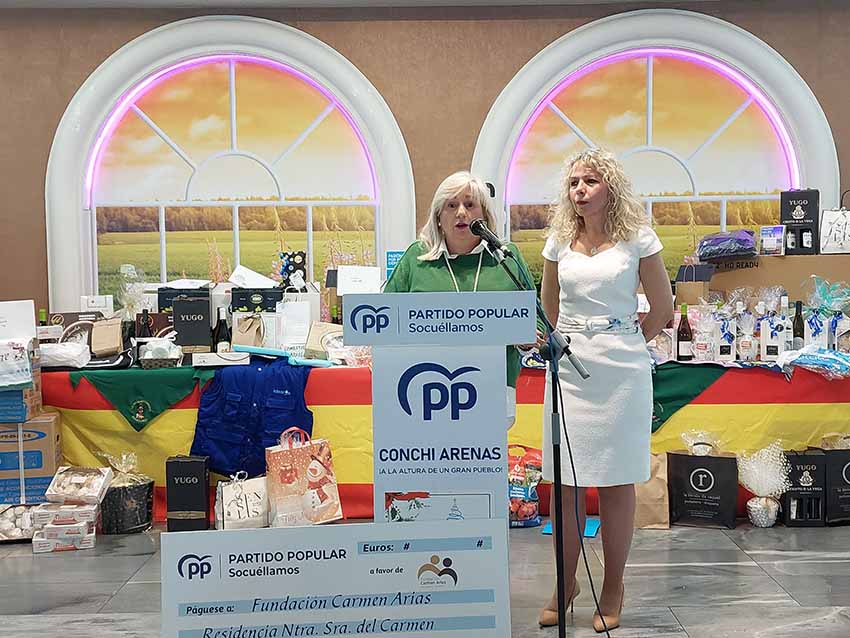 Ayer el Partido Popular de Socuéllamos celebró su tradicional Comida Benéfica en la que desde hace años recauda dinero para una asociación, entidad o colectivo que trabaja para los demás. Este año el dinero recaudado con la venta de tickets para el sorteo de regalos se entregó a la Residencia Nuestra Señora del Carmen y la Fundación Carmen Arias.