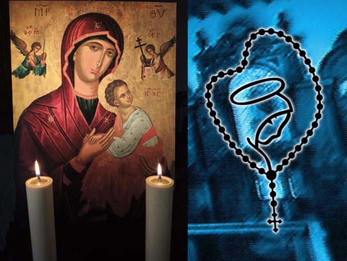 Se rezó cada misterio, con un fondo musical interpretado en directo, varios niños colocaban una vela encendida junto al icono de la Virgen, símbolo de la luz de la fe y la esperanza mientras sonaba música en directo. A continuación, los presentes rezaban el Padrenuestro y las diez Avemarías, concluyendo con un Gloria cantado, varias jaculatorias y el Ave María de Fátima.