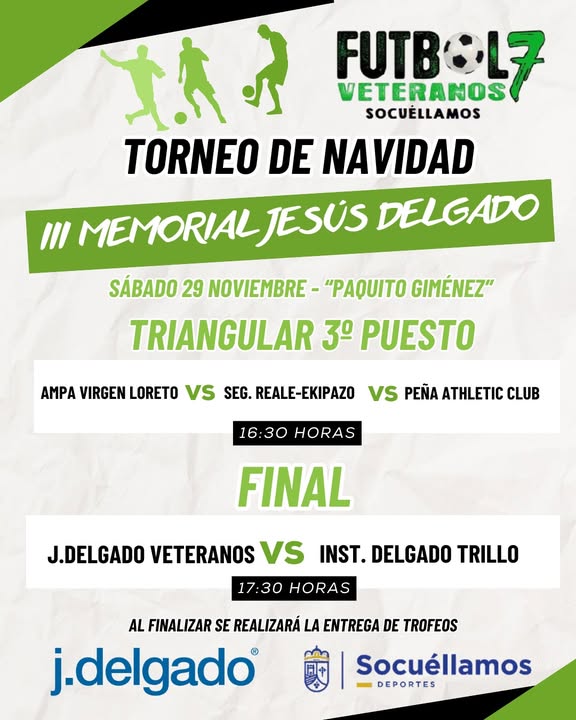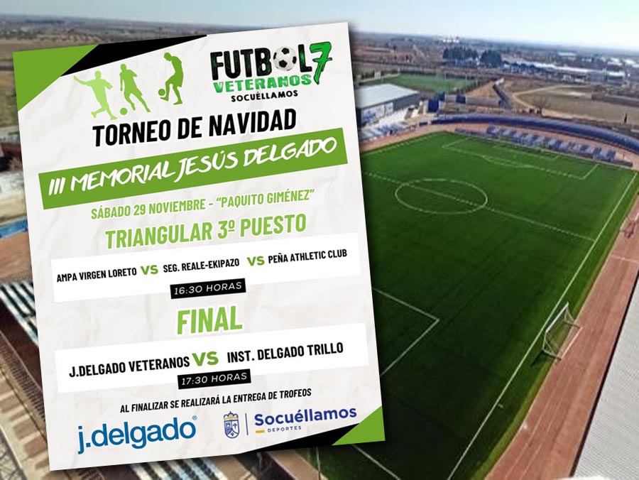 Este sábado 29 de noviembre llega a su final el Torneo de Navidad – III Memorial Jesús Delgado, una cita deportiva organizada por el colectivo de Fútbol 7 Veteranos Socuéllamos y que tendrá lugar en el campo “Paquito Giménez”.