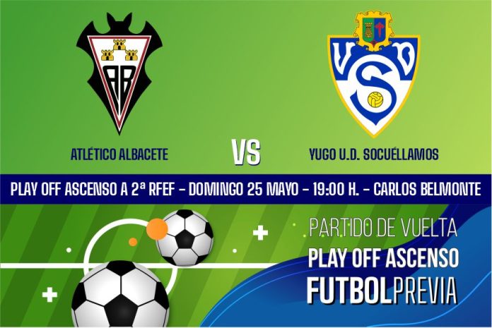 El Yugo U. D. Socuéllamos se juega este domingo a las 19:00 horas pasar a Semifinales de los play offs de ascenso a segunda división RFEF frente al Atlético Albacete al que ganó en el partido de ida disputado en el Paquito Giménez por 1-0 con gol de Sergio Pérez.