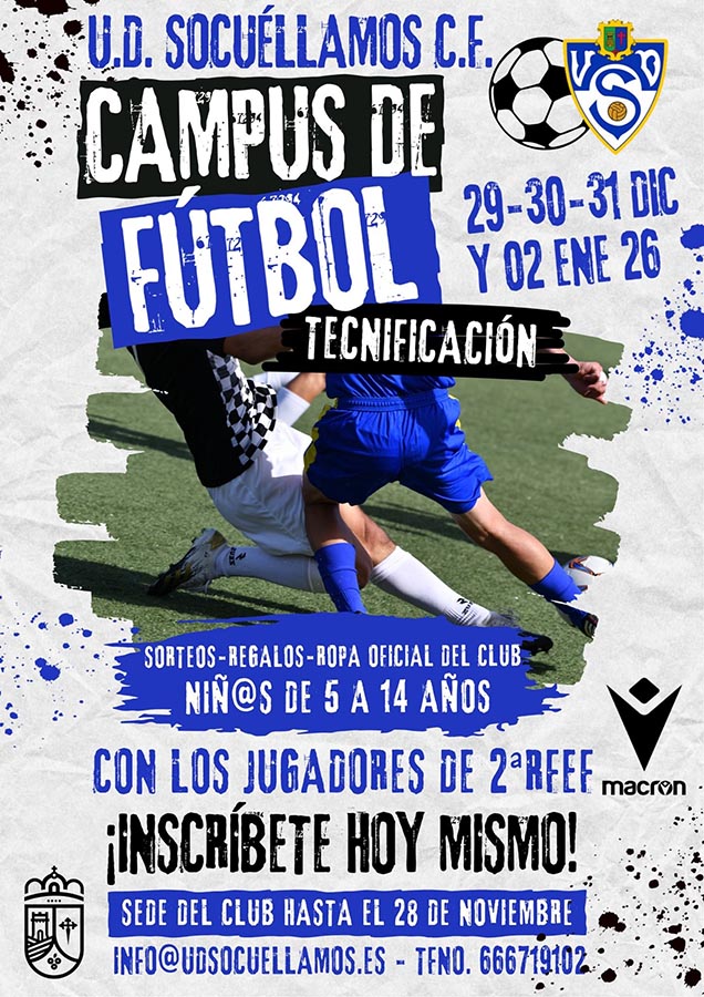 El Yugo U.D. Socuéllamos ha abierto el plazo de inscripción para su Campus de Fútbol de Tecnificación 2025, una iniciativa que se celebrará durante las vacaciones navideñas y que tiene como objetivo fomentar la formación deportiva y el aprendizaje técnico entre los más jóvenes.