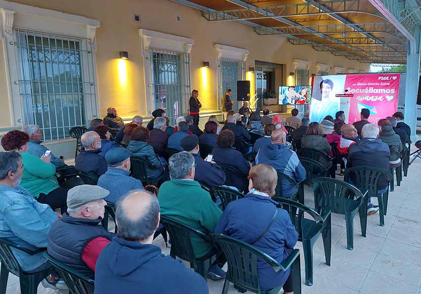 En este mitin, además de Elena García, intervinieron Pedro Arrabales, Mª Ángeles Moreno, Job Moya y Jesús Daniel Mateo. Hoy el Psoe cierra la campaña electoral con un acto en el Parque Infantil de Tráfico y en caso de lluvia se trasladarán al pabellón del colegio Gerardo Martínez. /