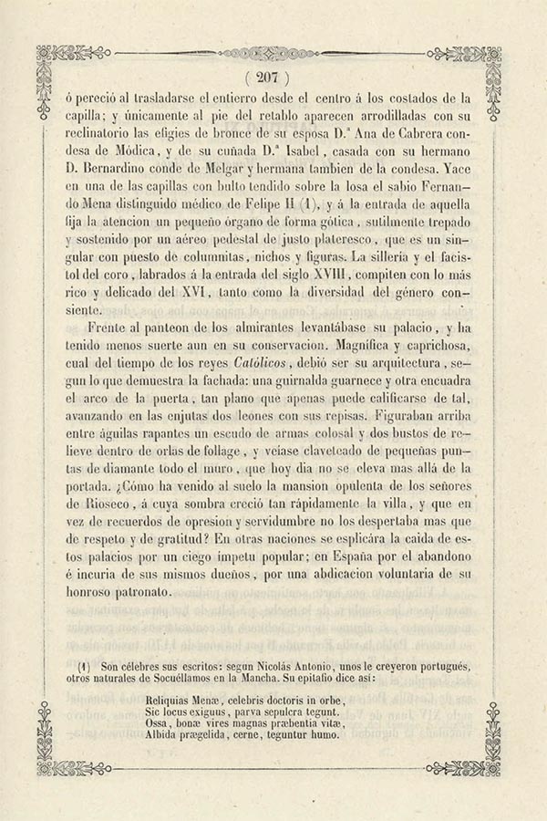 En un libro de 1839 aparece mencionado este epitafio, "RECUERDOS Y BELLEZAS DE ESPAÑA" con litografías de F. J. Parcerisa y textos de P. Piferrer.