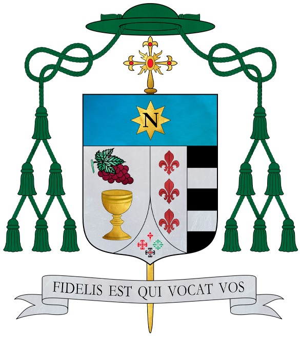 Finalmente, el jefe general del escudo es de azur con una estrella de ocho puntas de oro cargada de una N. Esta parte del escudo episcopal representa a la Virgen de Nieva, patrona de Autol, localidad natal del obispo.