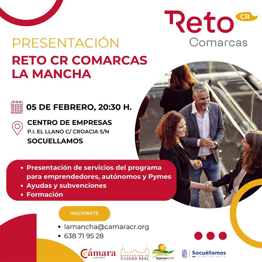 Hoy, miércoles 5 de febrero, a las 20:30 h. en el Centro de Empresas, situado en el Polígono El Llano (Calle Croacia S/N, frente al Punto Limpio) tendrá lugar la Presentación del Reto CR Comarcas La Mancha a cargo de la Cámara de Comercio de Ciudad Real.