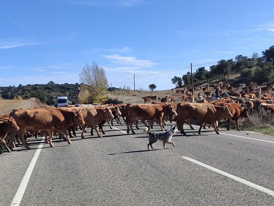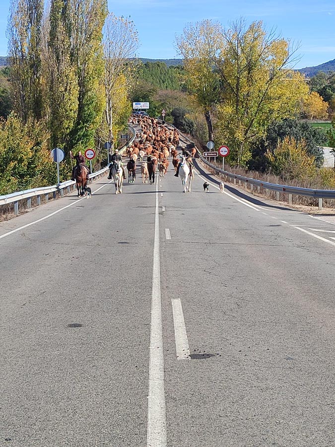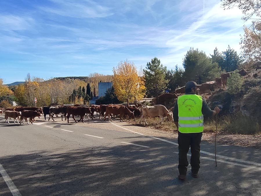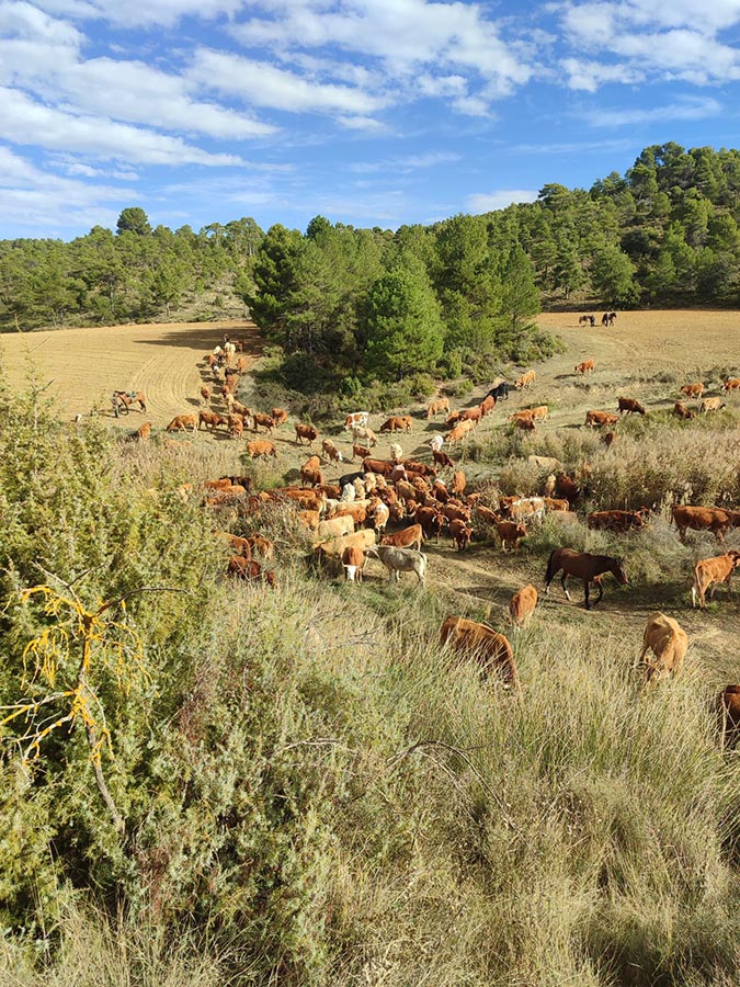 Hace unos días salieron de Orihuela del Tremedal y Guadalaviar, pueblos de Teruel situados en los Montes Universales, alrededor de 2.300 ovejas de raza merina y casi 300 vacas. Inician una ruta milenaria de trashumancia que, tras pasar el verano en las sierras de Teruel, les conduce hacia un clima más suave en la zona de La Carolina, en Jaén, donde pasarán el invierno pastando en las dehesas.