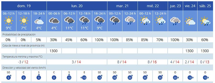 Esta semana que entra viene con lluvias y vientos de manera intermitente marcada por la llegada de viento más húmedo del oeste y suroeste. De ahí que el aporte de humedad procedente del Atlántico sea mayor, dado que son masas de aire de origen subtropical cargadas de vapor de agua y capaces de generar bastante inestabilidad en algunos momentos. Los denominados ríos atmosféricos suelen generar precipitaciones copiosas especialmente en zonas del oeste de la península.