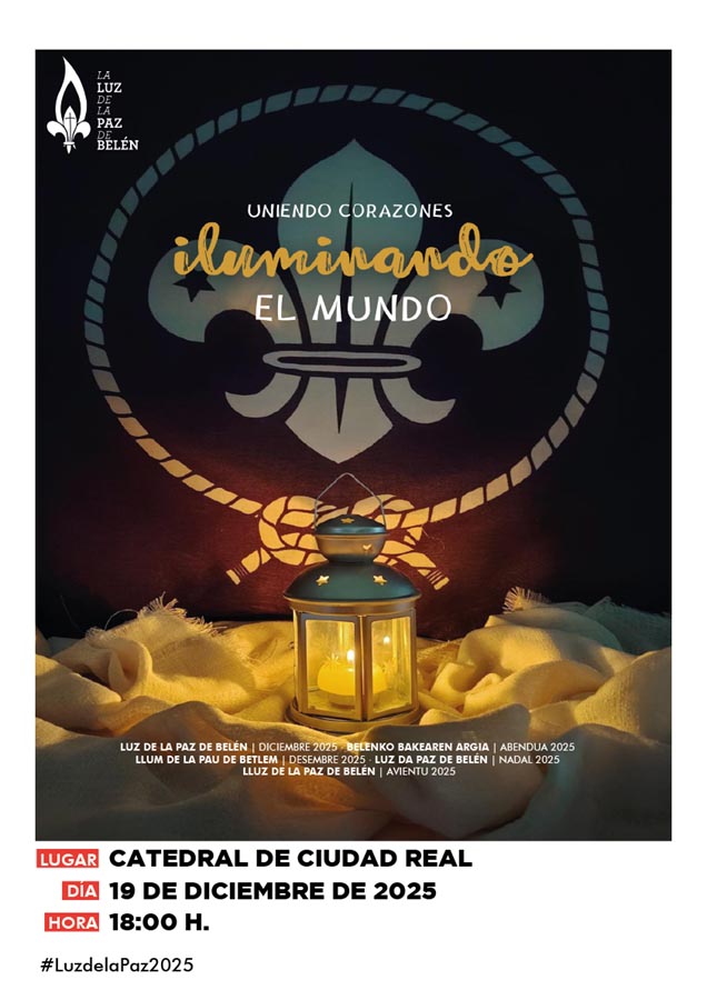 Todas las parroquias y comunidades de la Diócesis de Ciudad Real, así como cada uno de los grupos scouts de la provincia, están invitados a participar en la celebración de la Luz de la Paz de Belén, que tendrá lugar el próximo viernes 19 de diciembre, a las 18:00 h, en la Catedral de Ciudad Real.