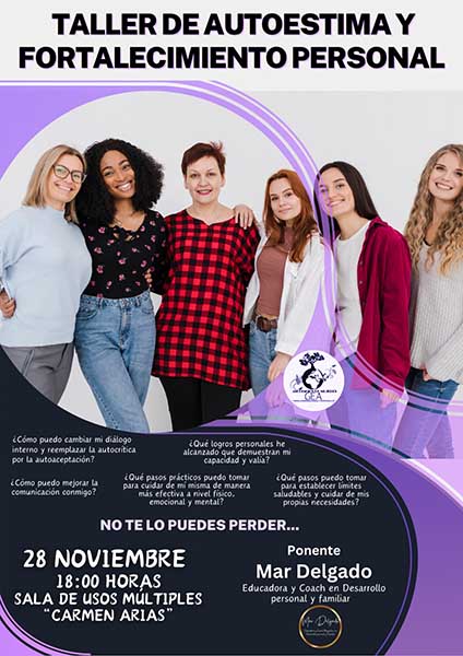 La educadora y coach en desarrollo personal y familiar, Mar Delgado, imparte esta tarde a las seis un taller de autoestima y fortalecimiento personal en la Sala de Usos Múltiples del Centro Carmen Arias.