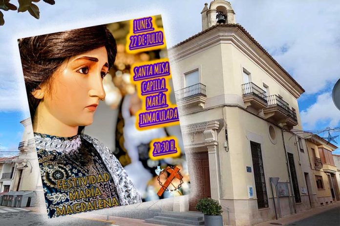 La Cofradía de la Preciosísima Sangre de Cristo de Socuéllamos comunica que hoy lunes 22 de julio se celebrará - a las 20:30 h. en la Capilla de María Inmaculada - Solemne Función en honor a Santa María Magdalena para conmemorar la festividad de la “apóstol de los apóstoles” tal y como la denominó el Papa Juan Pablo II.