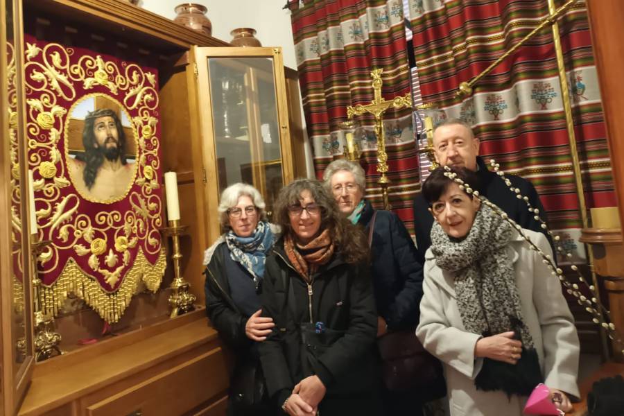 Muy agradecidos por esta visita, y conmovidos una vez más, por la extraordinaria pintura del rosto del Santísimo, no quisieron dejar pasar la ocasión de posar junto a esta obra de arte dejando una imagen para el recuerdo y para el archivo de la Hermandad.