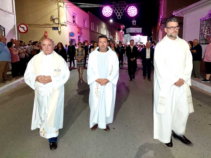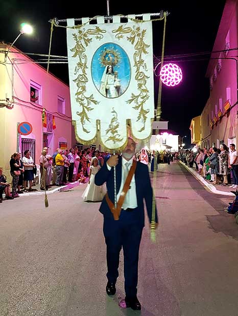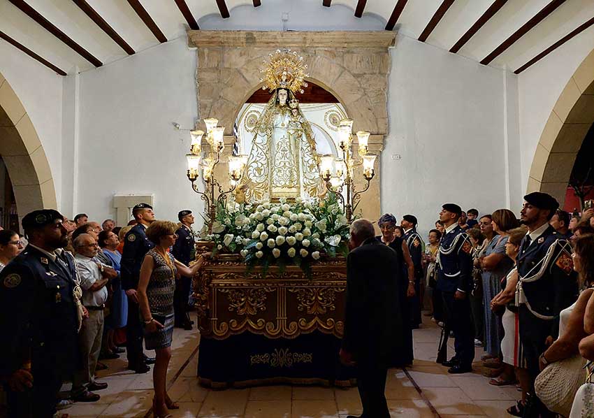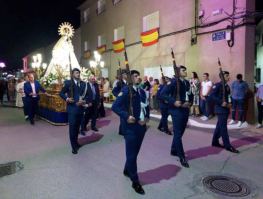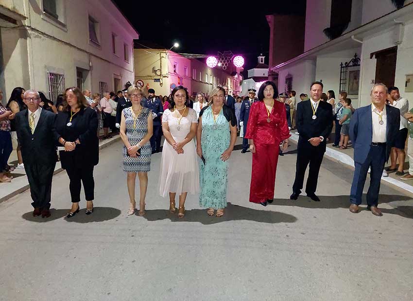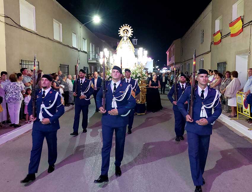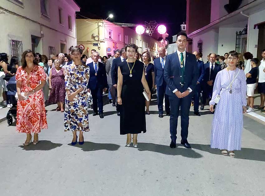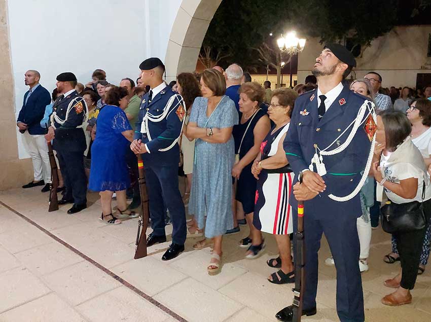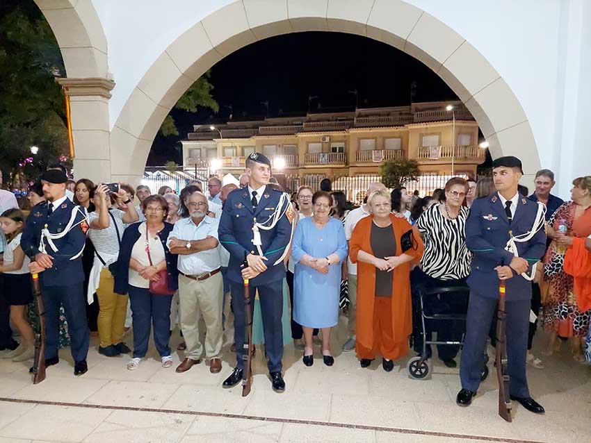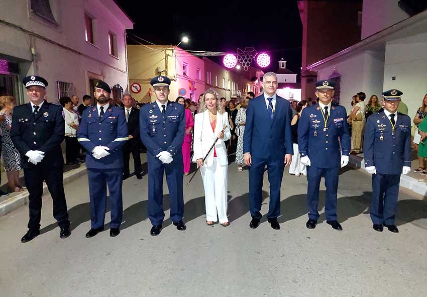 Subasta del estandarteJosé Luis Romero del Hombrebueno ganó la subasta del estandarte aportando 300 eurosReinas y Majetes del Casqueral y Reina de San CristóbalReina y Dama de la VendimiaPatrulla de Honores del Ejército del AireDirectivos de la HermandadAlcaldesa, presidente de la Hermandad, y mandos militaresConcejales de PP y Vox, esposas de militares, y pregoneroConcejales del PsoePresidentes de cofradías y hermandadesAmando López, Juan Pedro Andújar, Rafael Ruiz