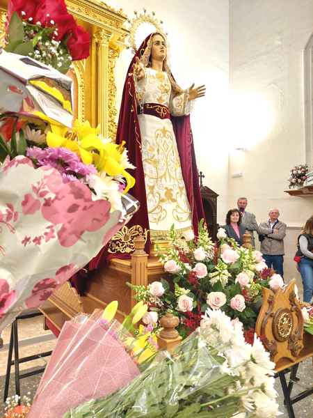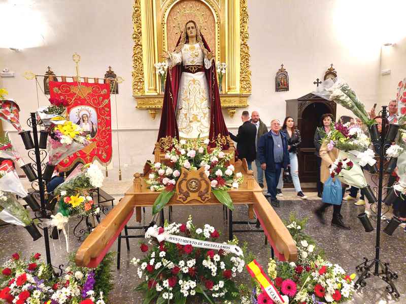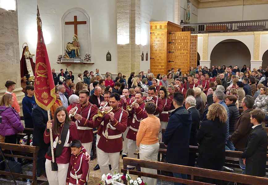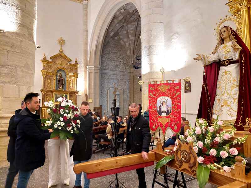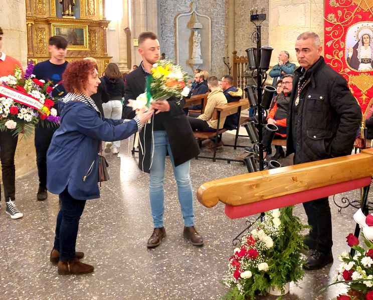 Tras los homenajes comenzó la ofrenda floral a Nuestra Señora de los Dolores previa a la procesión. Todo el acto estuvo amenizado con la música de la Banda de Cornetas y Tambores Ecce Homo y Nuestra Señora de los Dolores, única banda de tambores y cornetas de la Semana Santa socuellamina. /