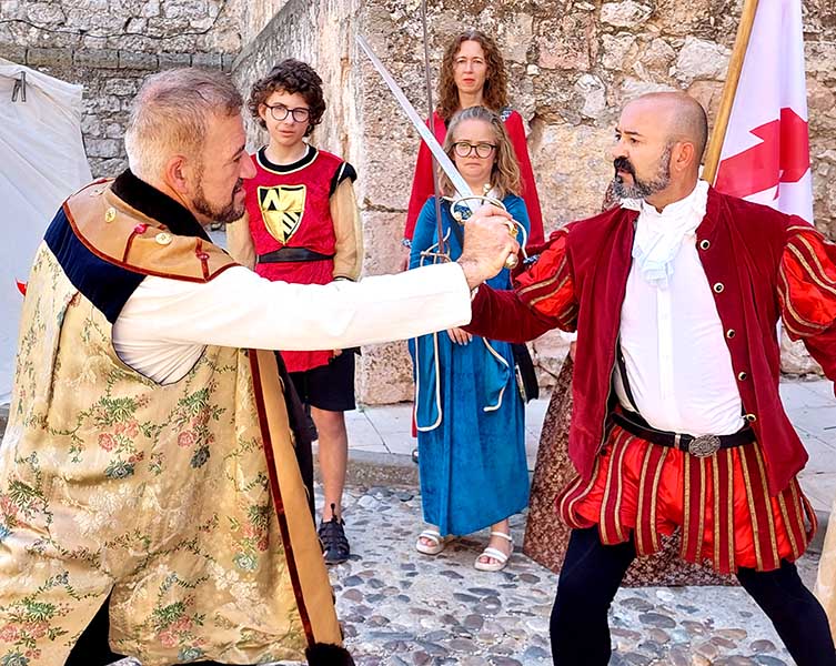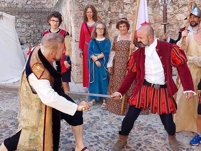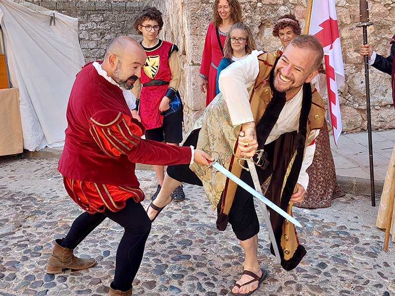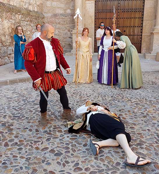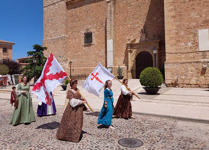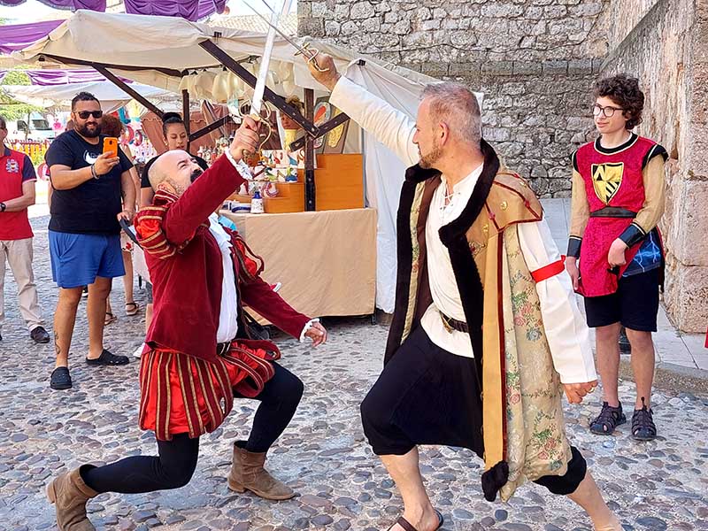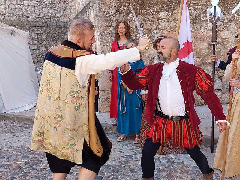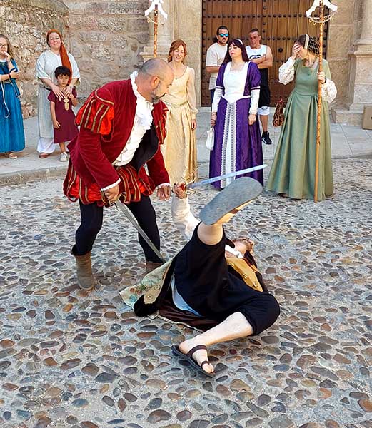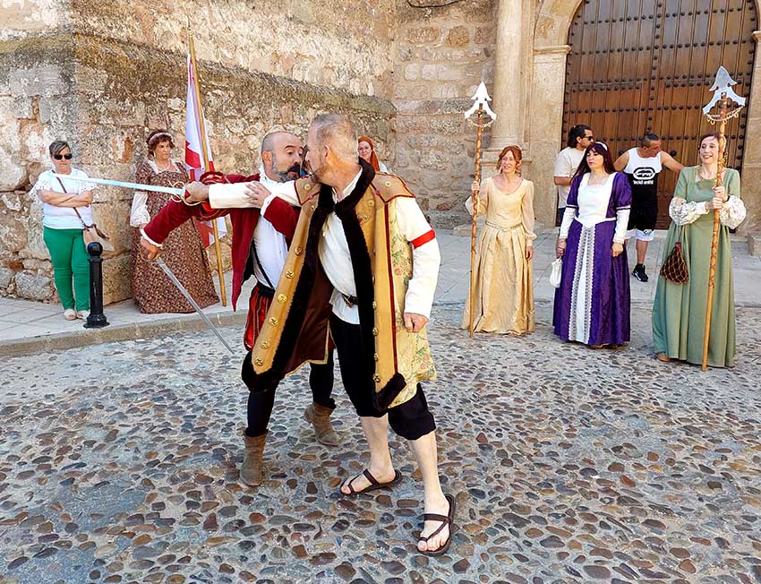 Esta mañana -dentro de las actividades del Mercado Renacentista que se viene celebrando desde el viernes y que terminará esta noche- la Asociación de Caballeros de la Orden de Santiago en La Mancha ha recreado un duelo con espadas entre soldados de los Tercios de Flandes. Antes han desfilado desde la Casa de la Encomienda a lo largo de todo el mercado rodeando la Parroquia de la Asunción/