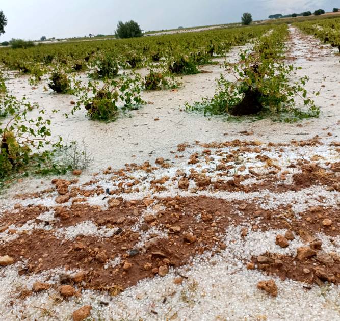 La DANA ha azotado la península este fin de semana causando estragos en diversas zonas del término de Socuéllamos. Los agricultores en plena vendimia están viendo como la lluvia y el granizo han dañado o, directamente, acabado con la cosecha. En zonas como Titos, Molinillos, El Cerro, El Charcón, La Hijosa, el camino de Alcázar, o la zona de la depuradora de agua hay viñedos anegados de agua y dañados por el granizo. Las siguientes fotos y videos han sido facilitados por agricultores y por Aeroalonvik. /