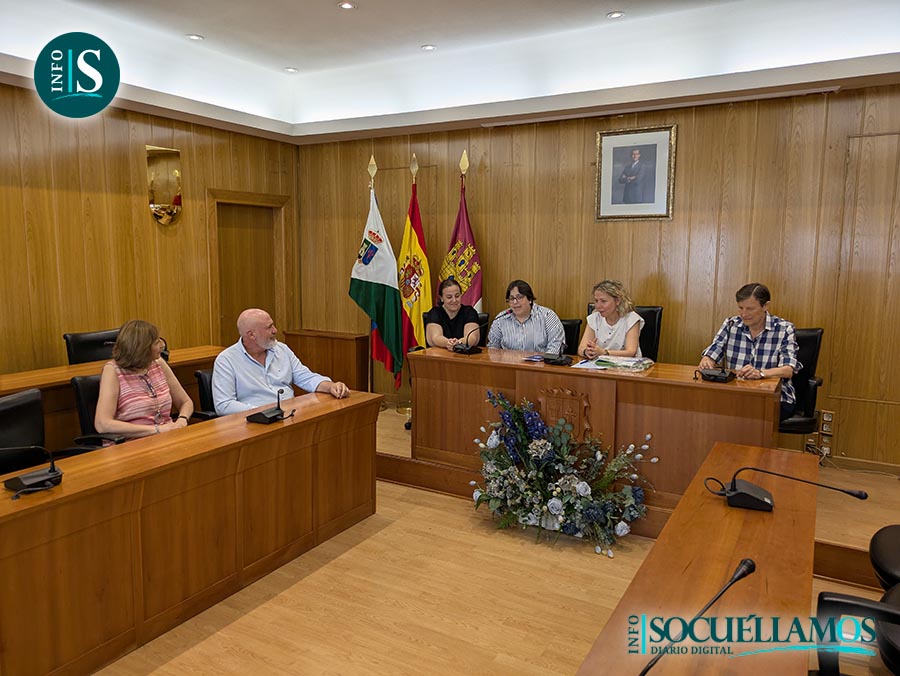 Antes de irse Pilar y Gema han sido recibidas en el Ayuntamiento donde la alcaldesa, Conchi Arenas, junto a José Luis Romero del Hombrebueno, teniente alcalde y Azucena López concejal de bienestar social les han hecho entrega de una bandera de Socuéllamos.