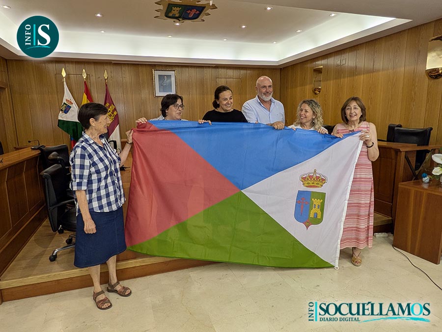 Antes de irse Pilar y Gema han sido recibidas en el Ayuntamiento donde la alcaldesa, Conchi Arenas, junto a José Luis Romero del Hombrebueno, teniente alcalde y Azucena López concejal de bienestar social les han hecho entrega de una bandera de Socuéllamos.