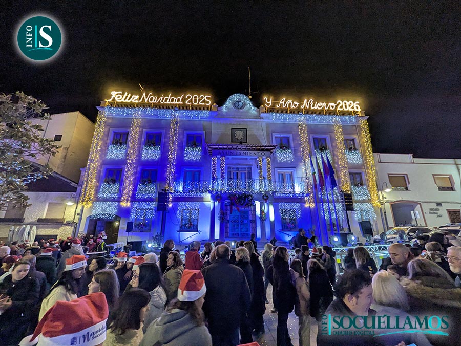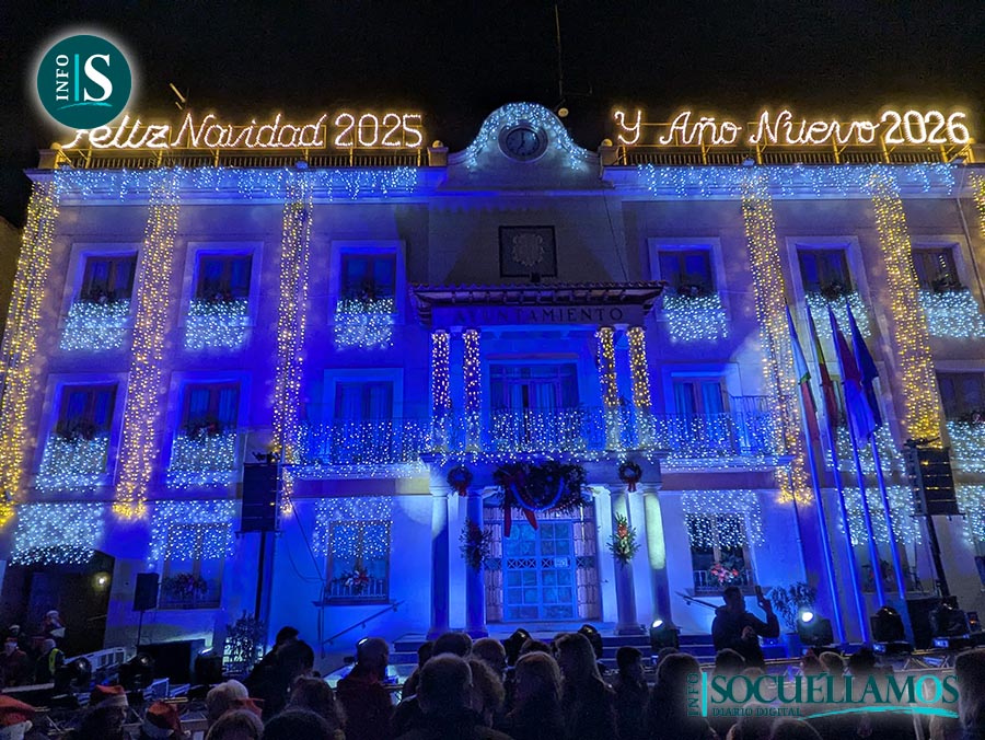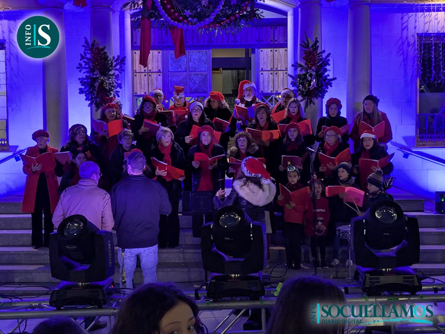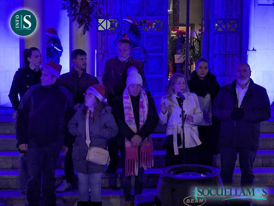 El momento central llegó con un espectáculo de luz, pirotecnia y sonido, proyectado sobre la fachada del Ayuntamiento, que dio paso a un emocionante encendido de la iluminación navideña tras la cuenta atrás dirigida por Conchi Arenas, acompañada por un grupo de niños.