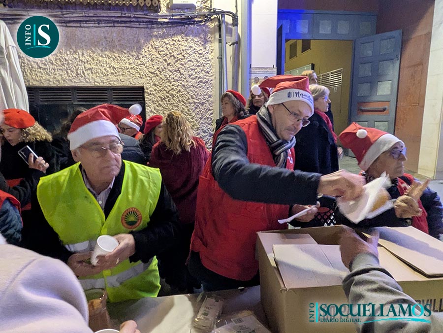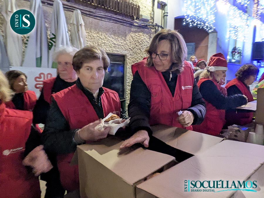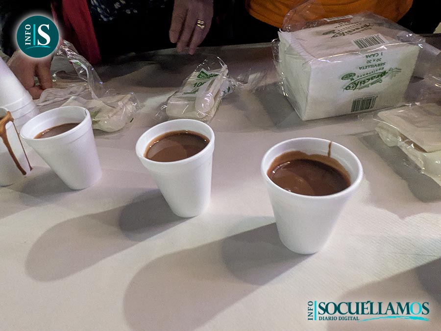 La tarde-noche concluyó con un chocolate solidario donado por Churrería Beatriz, acompañado de magdalenas aportadas en parte por la panadería Pecasan. Con un precio simbólico de 3 euros, la recaudación se destinó a varias ONG socuellaminas: Siempre Adelante, Cruz Roja, Solidarios y Cáritas.