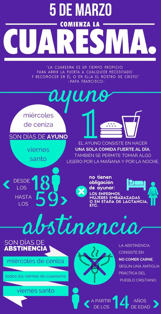 Hay una serie de ayunos y abstinencias obligatorios para todo católico, que se resumen en este gráfico: