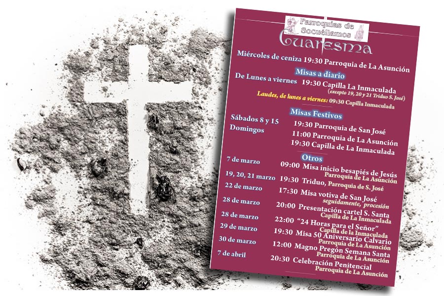 Compartimos a continuación las fechas, horas y lugares de los distintos actos religiosos que se van a realizar en Socuéllamos con motivo de la Cuaresma:
