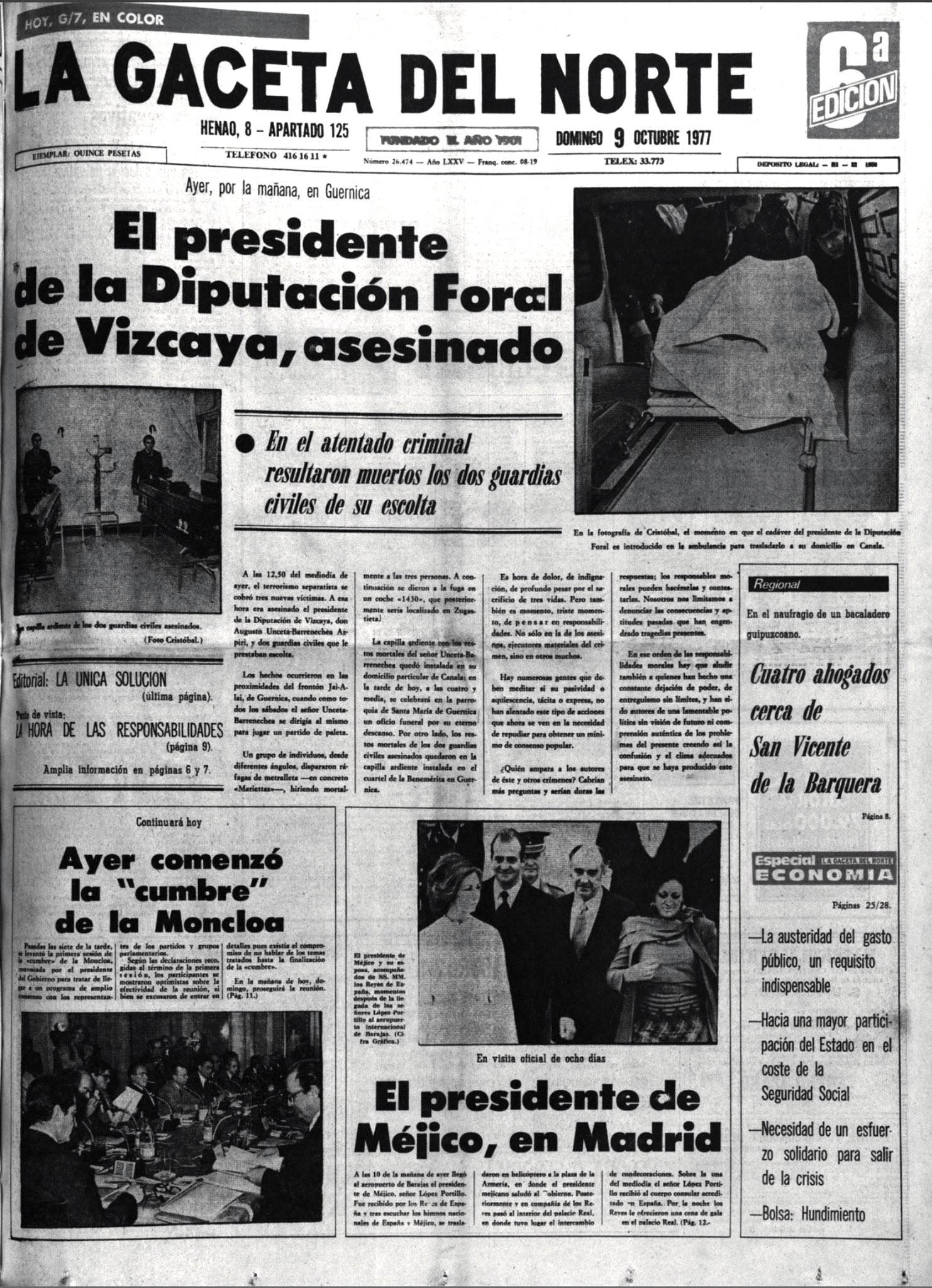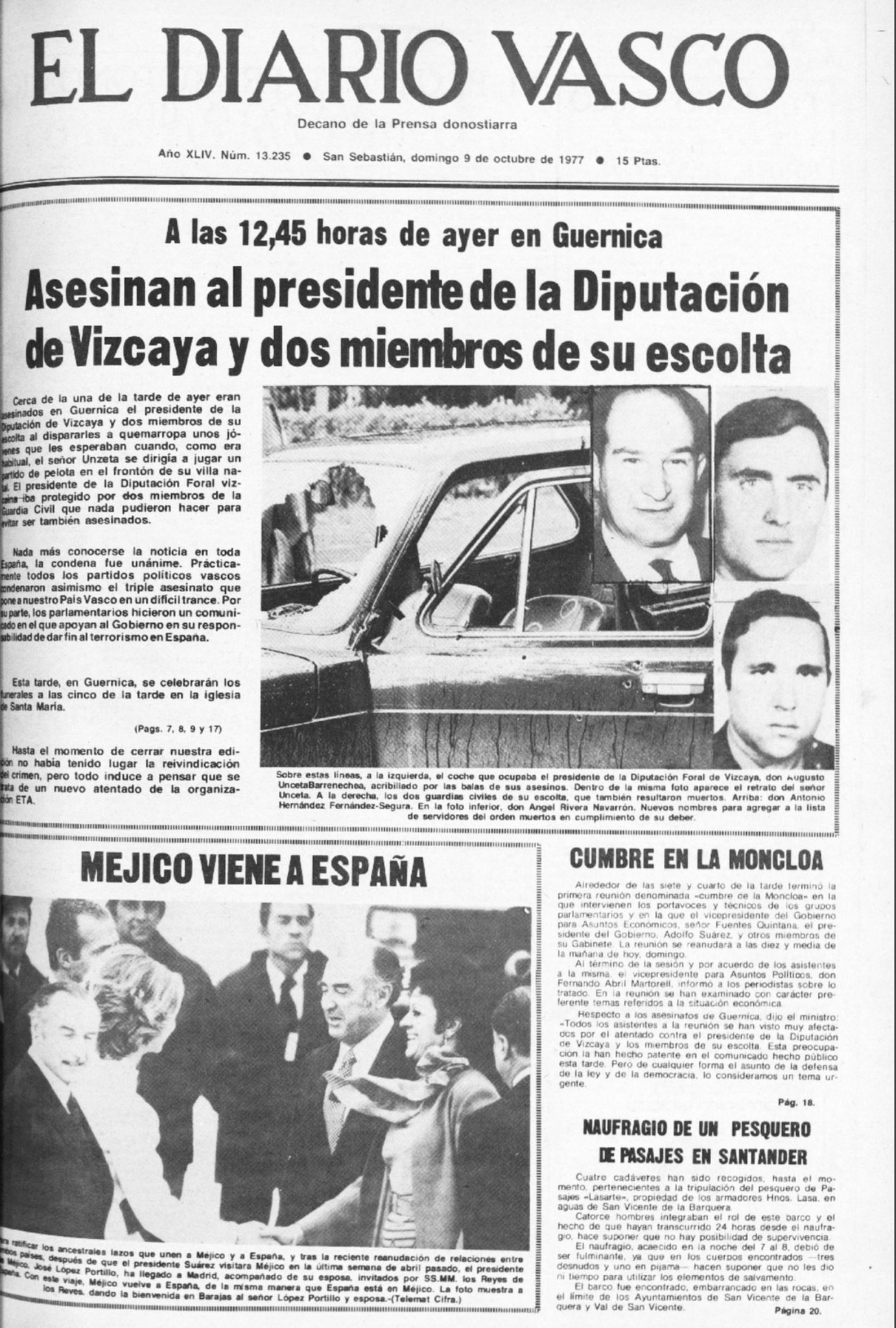 Corría el año 1977, en los años de plomo cuando ETA mataba prácticamente a diario en aquella España en plena Transición. El guardia civil socuellamino Ángel Rivera Navarrón junto con Antonio Hernández Fernández-Segura formaban la escolta del presidente de la Diputación de Vizcaya, Augusto Unceta Barrenechea.