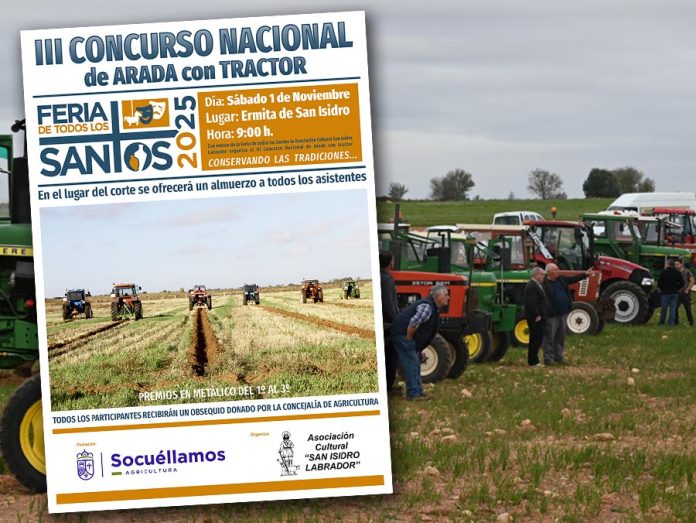 Socuéllamos acogerá el próximo sábado 1 de noviembre el III Concurso Nacional de Arada con Tractor, un evento que se enmarca dentro de la festividad de la Feria de Todos los Santos 2025. La cita tendrá lugar en las cercanías de la Ermita de San Isidro a partir de las 9:00 de la mañana.