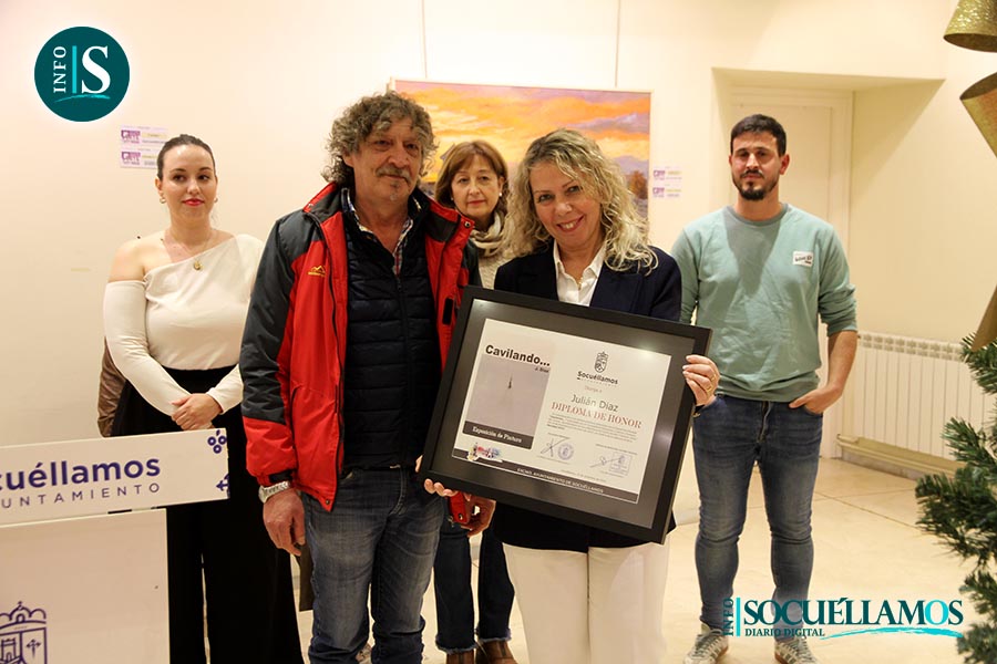 Ayer jueves 19 de diciembre a las 19:30 hen el Centro de Arte Carmen Arias se inauguró la exposición de Julián Díaz que con el título, 'CAVILANDO' estará abierta hasta el 5 de enero de 2025. En la presentación intervinieron la alcaldesa de Socuéllamos, Conchi Arenas, la concejal de cultura, Salomé Carrión, el concejal de juventud, José Ramón Moya, el artista Julián Díaz y el técnico de cultura, Fidel Fernández. También estaban presentes la concejal de bienestar social, Azucena López, y los concejales del grupo socialista, Carmen Mateo y Pedro Arrabales.