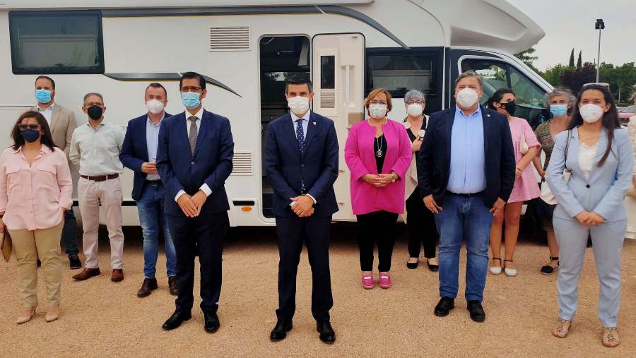 El presidente de la Diputación de Ciudad Real, José Manuel Caballero, junto al alcalde de Campo de Criptana, Santiago Lázaro, y la delegada de la Junta, Carmen Olmedo, han inaugurado el nuevo parking de autocaravanas con el que cuenta la localidad.