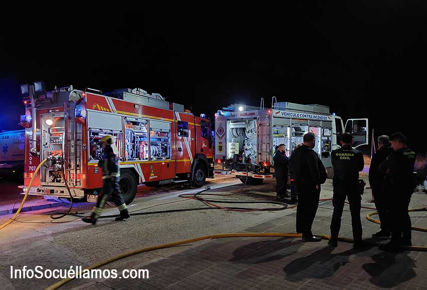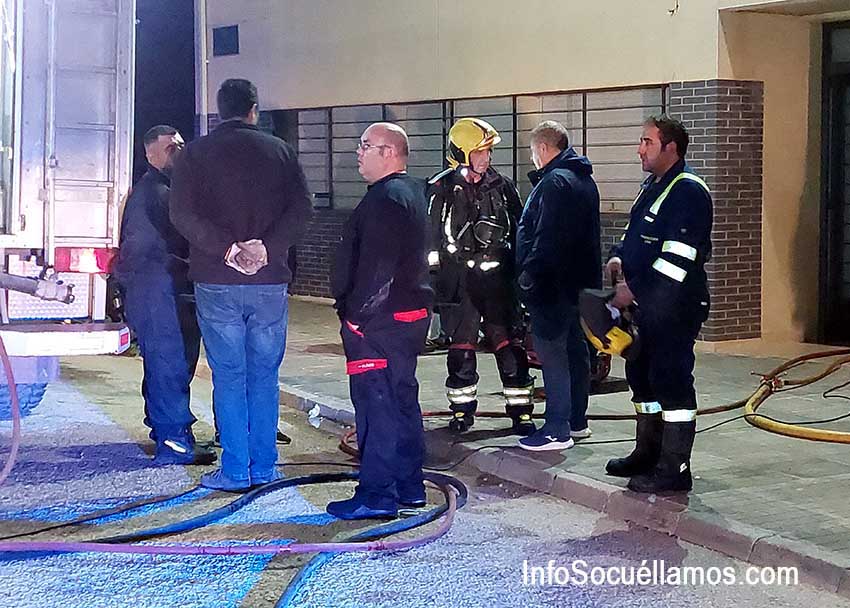 Los bomberos han llegado cuando los voluntarios de Protección Civil llevaban media hora sofocando las llamas y han tomado el mando terminando de apagar el incendio. Sofocado el fuego han colocado dos equipos de ventilación para eliminar el humo y gases.