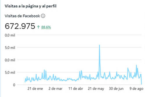 Del 1 de enero al 18 de agosto, las visitas a la página de Facebook de InfoSocuéllamos han sido 672.975, registrando un incremento de un 88,6 por ciento respecto al mismo periodo en 2022.