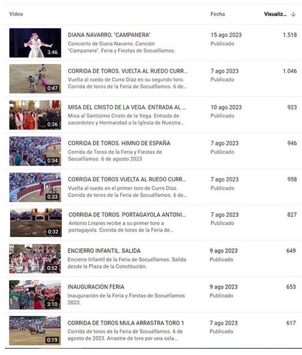 La última novedad de InfoSocuéllamos es su canal en YouTube el cual en pocos días de vida no ha podido tener mejor acogida. Del 6 al 18 de agosto los videos del canal @infosocuellamos2023 han tenido 21.761 visualizaciones.