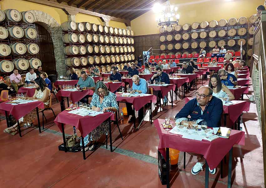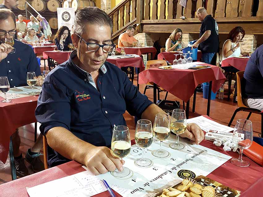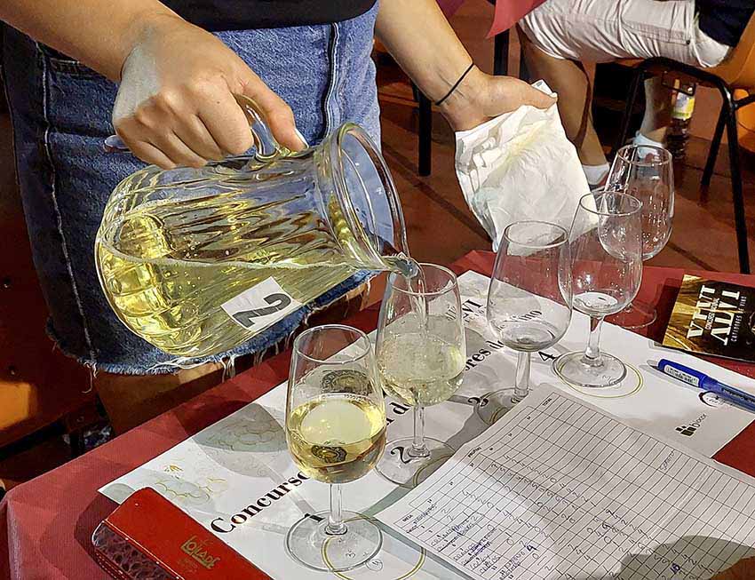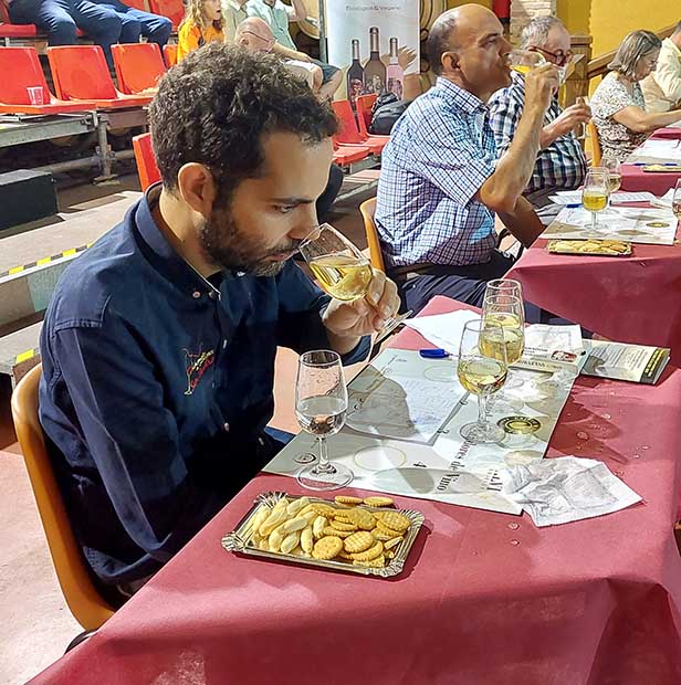 Los catadores han tenido que ordenar las muestras de vino según su graduación alcohólica, acidez total, tanino, gas sulfuroso; han tenido que identificar variedades de vino blanco, y clasificar cuatro vinos como crianza, reserva, gran reserva y joven.