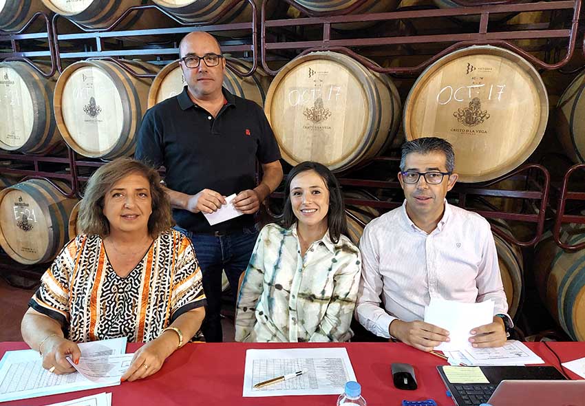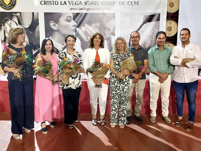 En el acto celebrado en la Sala de Barricas de la cooperativa han estado presentes la alcaldesa, Conchi Arenas; la delegada provincial de Agricultura, Amparo Bremard; la directora general de Empleo, Elena García; Carlos Bonilla, presidente de la DO La Mancha; Sergio Hurtado miembro de Cooperativas Agroalimentarias; y María José Moreno, presidenta de Bodegas Crisve junto a otros miembros de la Junta Rectora.