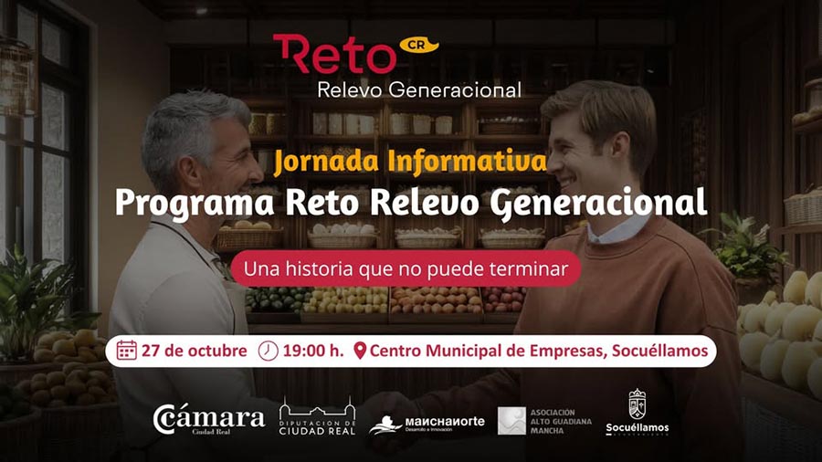 El próximo 27 de octubre, a las 19:00 horas, el Centro Municipal de Empresas de Socuéllamos será el escenario de la jornada informativa del Programa Reto Relevo Generacional, una iniciativa cuyo lema es “Una historia que no puede terminar”.
