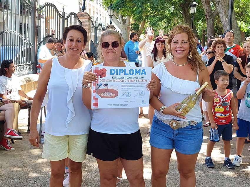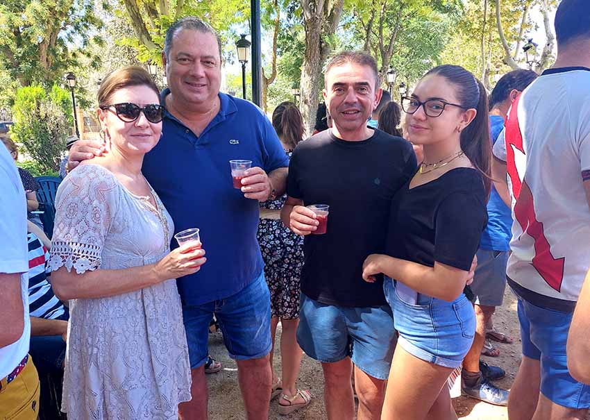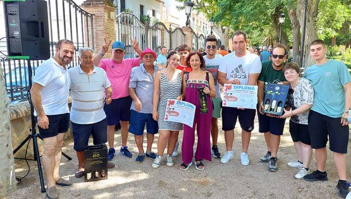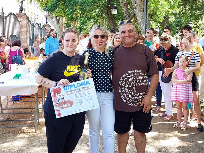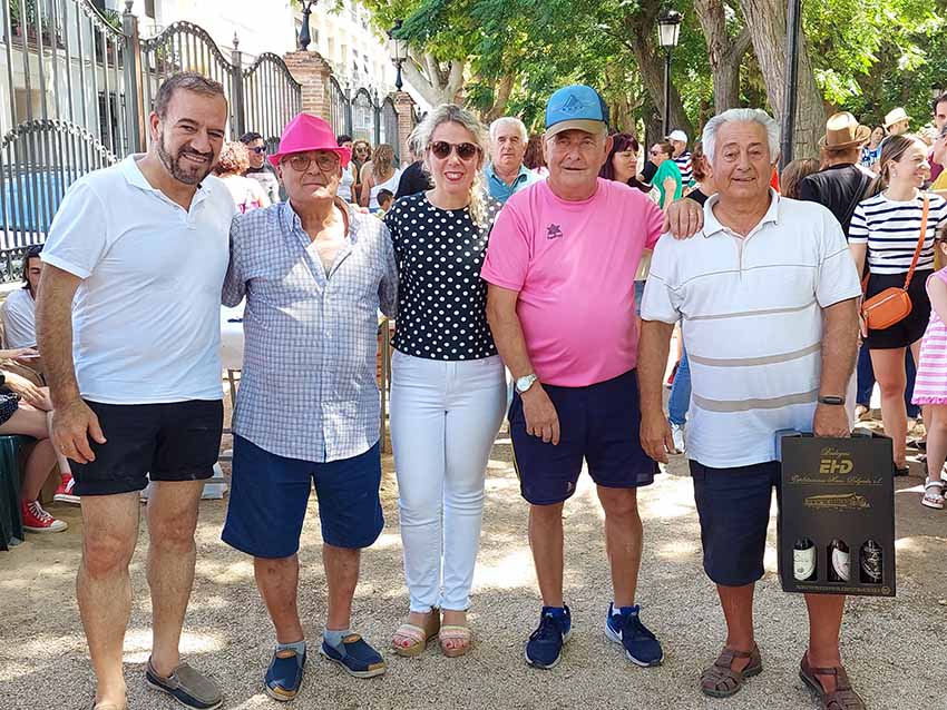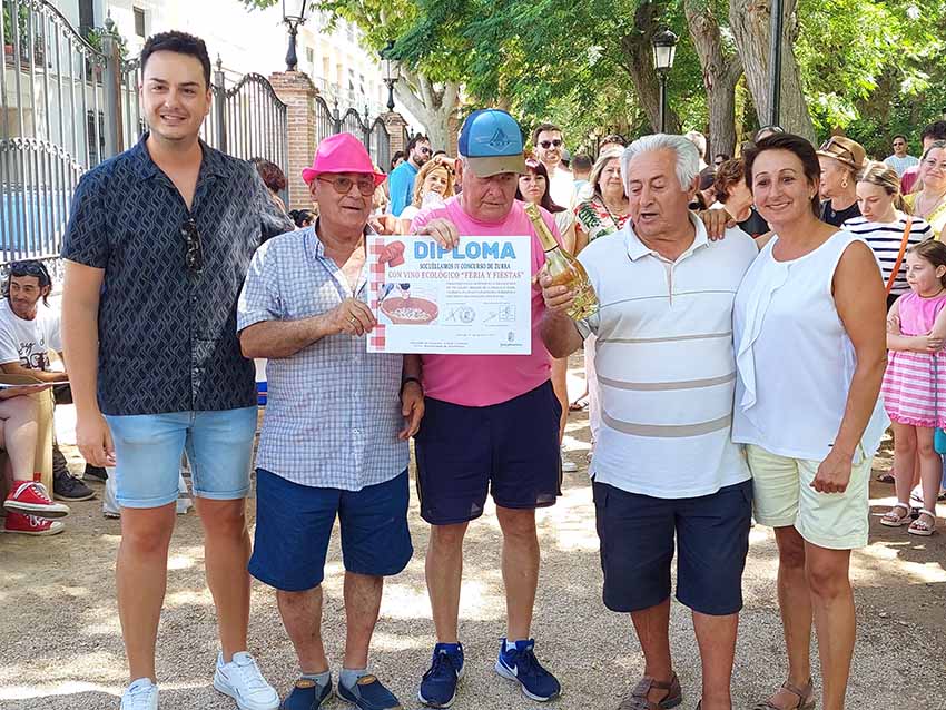 Esta mañana en el Parque Adolfo Suárez se ha llevado a cabo el IV Concurso de Zurra con vino ecológico de Explotaciones Hermanos Delgado. Once han sido los participantes que pugnaban por elaborar la mejor mezcla de agua, vino y azúcar. El jurado compuesto por catadores de Asocaviso y la Asociación San Isidro han determinado que las tres mejores zurras han sido las de Juan Manuel Tortosa, Daniel Collado, e Isabel Delgado. Los premios los han entregado la Corte de Reina y Damas; la alcaldesa, Conchi Arenas; el primer teniente de alcalde, José Luis Romero del Hombrebueno; la edil de Cultura, Salomé Carrión; los concejales socialistas Pedro Arrabales y Mª Ángeles Moreno; y Remedios y José Carlos Delgado en representación de Bodegas EHD. /