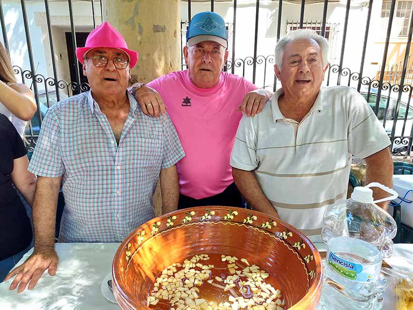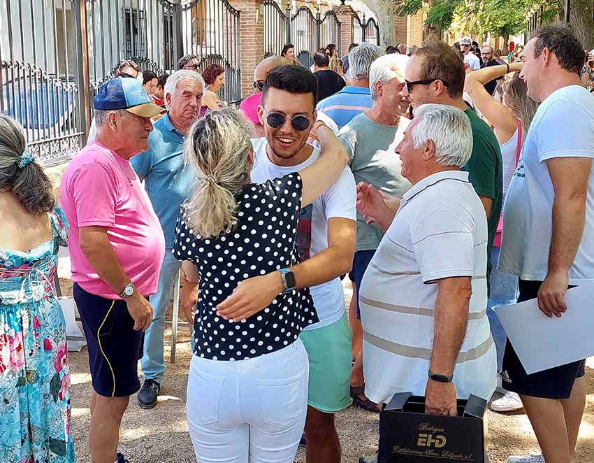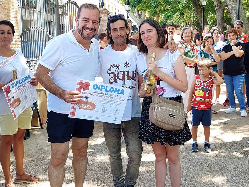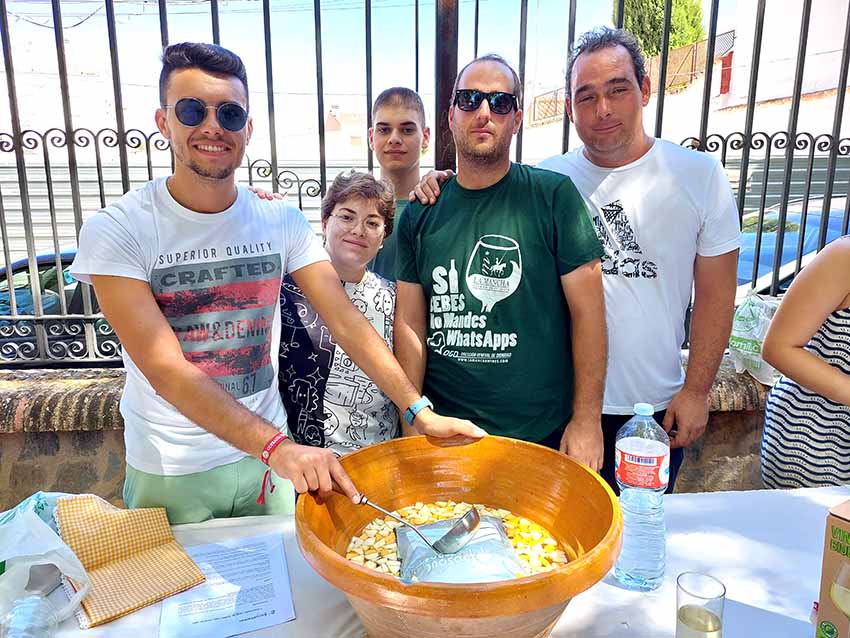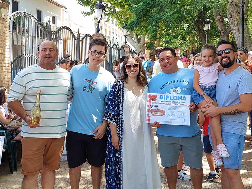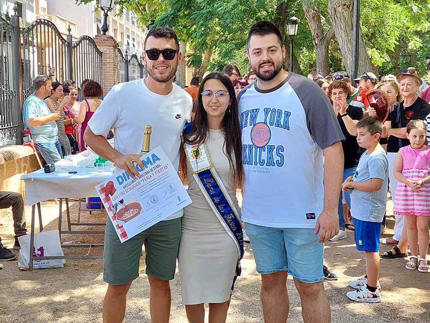 Esta mañana en el Parque Adolfo Suárez se ha llevado a cabo el IV Concurso de Zurra con vino ecológico de Explotaciones Hermanos Delgado. Once han sido los participantes que pugnaban por elaborar la mejor mezcla de agua, vino y azúcar. El jurado compuesto por catadores de Asocaviso y la Asociación San Isidro han determinado que las tres mejores zurras han sido las de Juan Manuel Tortosa, Daniel Collado, e Isabel Delgado. Los premios los han entregado la Corte de Reina y Damas; la alcaldesa, Conchi Arenas; el primer teniente de alcalde, José Luis Romero del Hombrebueno; la edil de Cultura, Salomé Carrión; los concejales socialistas Pedro Arrabales y Mª Ángeles Moreno; y Remedios y José Carlos Delgado en representación de Bodegas EHD. /