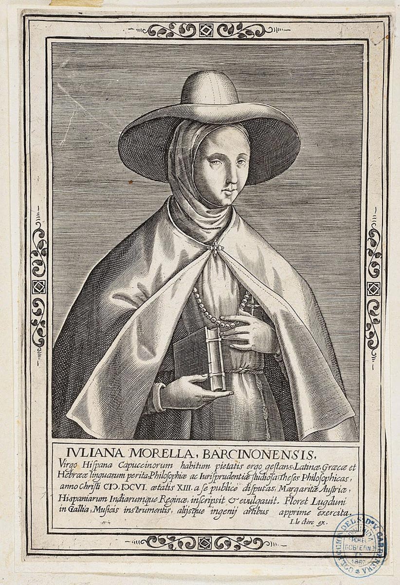 Juliana Morell, nacida en Barcelona el 16 de febrero de 1594, fue una destacada humanista, políglota y religiosa dominica. Considerada una niña prodigio, defendió tesis orales en filosofía (lógica y moral) a los 12 años en su casa, de Lyon, hito por el que ha sido rememorada como la primera doctora extrauniversitaria de la historia.