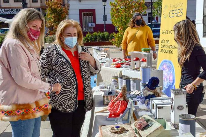 Coincidiendo esta martes, 26 de octubre, con el Día del Daño Cerebral Adquirido, Fundación CERES ha montado en la plaza de España un mercadillo para recaudar fondos contra la enfermedad.