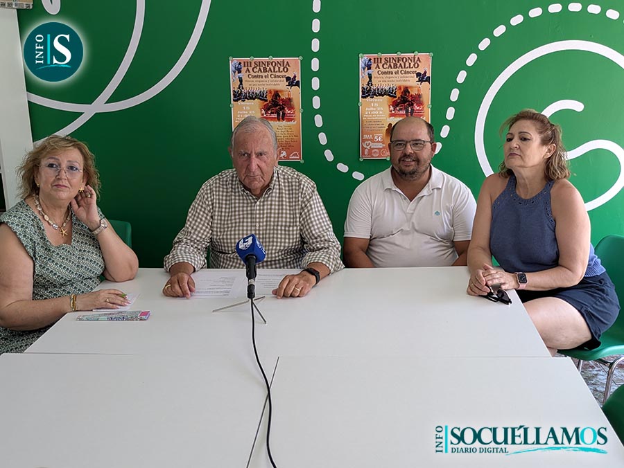 Ayer miércoles, a las 12:00 del mediodía, el presidente de la AECC de Socuéllamos, Sebastián García, junto a José Ángel Morales, presentó la III edición de Sinfonía a Caballo contra el Cáncer. Se trata de un espectáculo que combinará arte ecuestre, música y danza, y que se celebrará el próximo 18 de julio a las 21:00 h en la Plaza de Toros Lorenzo Manuel Villalta de Socuéllamos.