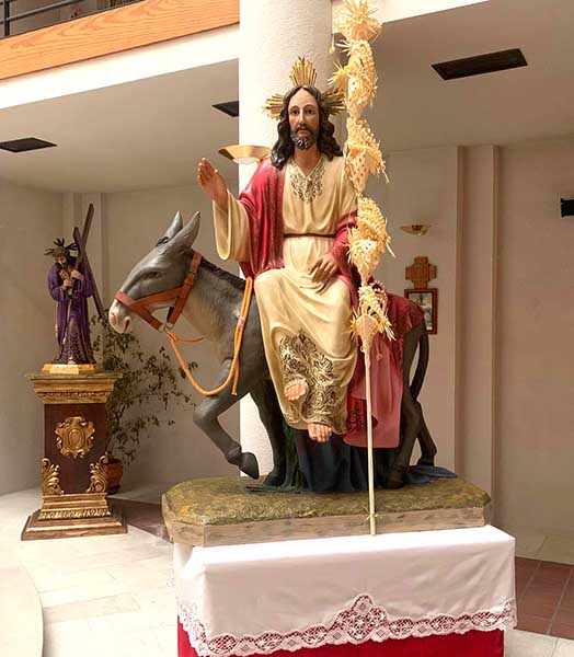 La Cofradía de la Preciosísima Sangre de Cristo ha llevado hasta la Capilla de la Residencia Nuestra Señora del Carmen la imagen de Jesús Entrando en Jerusalén, conocida popularmente como la Borriquita, para que durante unas semanas los usuarios de este complejo residencial disfruten de ella.