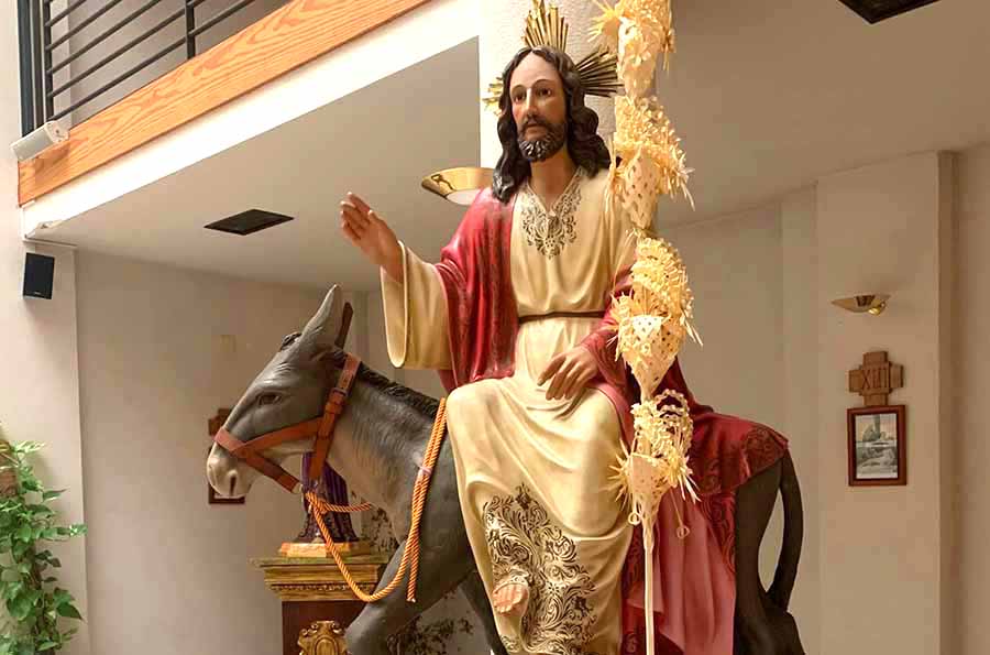 La Cofradía de la Preciosísima Sangre de Cristo ha llevado hasta la Capilla de la Residencia Nuestra Señora del Carmen la imagen de Jesús Entrando en Jerusalén, conocida popularmente como la Borriquita, para que durante unas semanas los usuarios de este complejo residencial disfruten de ella.