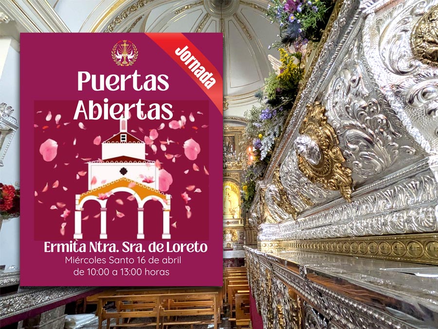 Esta mañana de Miércoles Santo, en la Ermita de Ntra. Sra. de Loreto, la Cofradía de Ntro. Padre Jesús del Calvario ha celebrado una Jornada de Puertas Abiertas entre las 10:00 y las 13:00 h. en la que numerosas personas se han acercado a venerar a la Santísima Virgen de Loreto y a los Santos Titulares de la Cofradía ya colocados en sus respectivos pasos y preparados para procesionar.