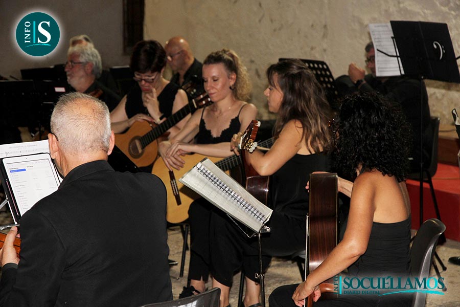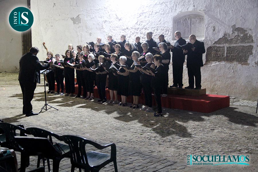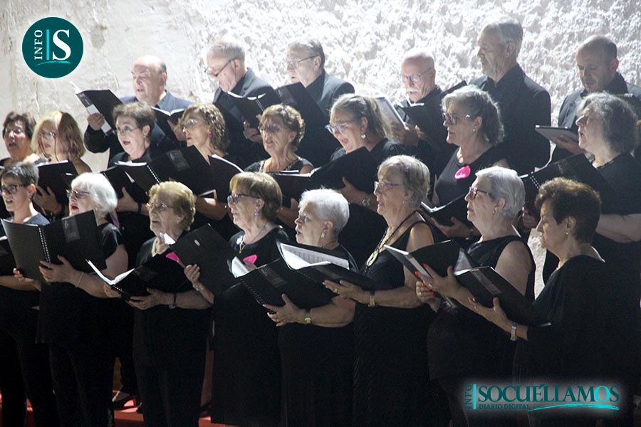 Los dos grupos musicales socuellaminos, ambos dirigidos magistralmente por Javier Gómez, han ofrecido en la calurosa noche del 6 de agosto, un delicioso concierto en el que han tenido a un público entregado. Un público que ha completado el aforo de sillas dispuesto para la ocasión. Tanto la Coral 'Jesús Montalbán' como la Agrupación de Pulso y Púa 'Torre de Vejezate' tiene un mérito añadido dado que están formadas exclusivamente por socuellaminos y con una gran proporción de jubilados.