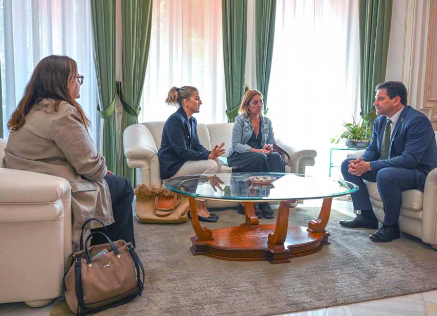 La Asociación Down Ciudad Real Caminar ha acudido a una reunión con el presidente de la Diputación Provincial, Miguel Ángel Valverde, para iniciar un periodo de colaboración que de continuidad y mejore los anteriores. Valverde ha recibido a la presidenta, Gema Cabanes, a la coordinadora del Servicio de Integración Social y Laboral, Celia Muñoz, y a la coordinadora del Programa de Formación, Cecilia Medina.