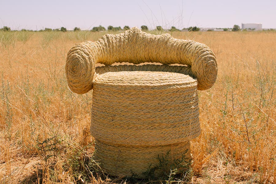 El esparto, material central del proyecto, es trabajado a mano por artesanos locales, estableciendo una alianza con la artesanía de la zona que genera nuevas oportunidades económicas en entornos rurales en riesgo de despoblación.