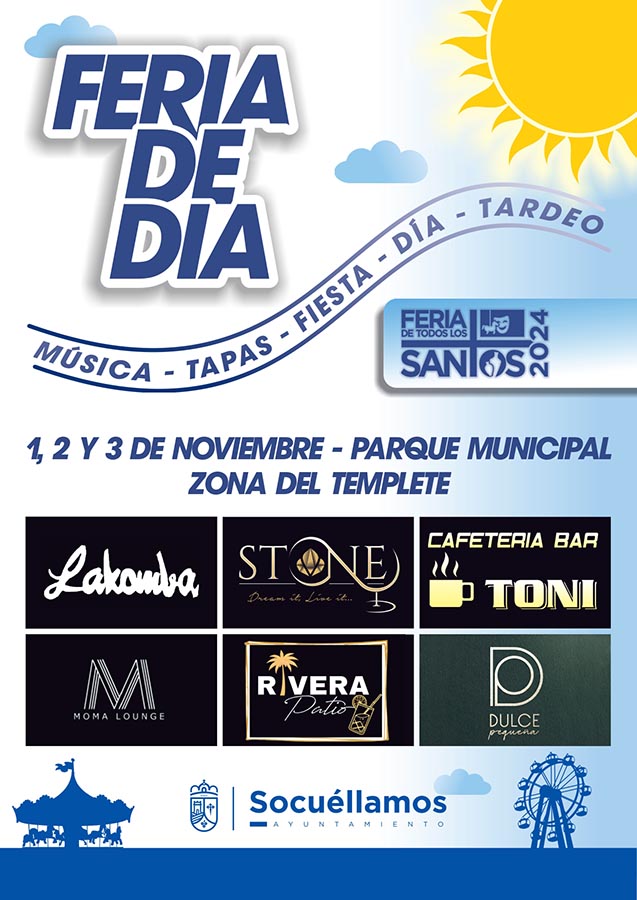 La ‘Feria de Día’ contará con la participación de Lakomba Copas, Stone Pub, Moma Lounge, Rivera Patio, Dulce Pequeña y Bar Toni, y, desde el Ayuntamiento, se invita a todos los vecinos de Socuéllamos y visitantes a acercarse a la misma y disfrutar de la diversión que va a ofrecer.