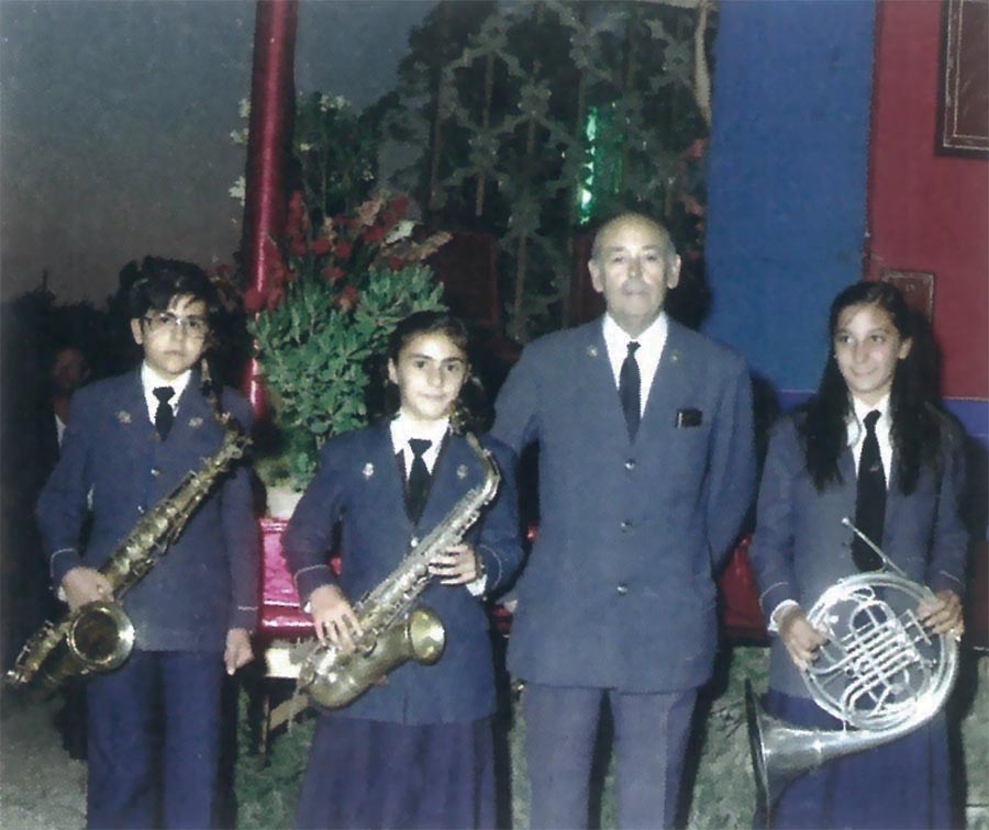 Quién sabe si sus frecuentes retornos, aparte de las razones arriba expuestas, también fueron debidos a la corta edad que tenía cuando tuvo que marchase a estudiar. Contaba con diez años cuando se fue a Ciudad Real con su maestro D. Antonio Segura y, más tarde (1933) a Madrid para formarse en el Conservatorio Superior de Música. A esas alturas ya tocaba varios instrumentos. El primero había sido “el saxofón-soprano que antes había pertenecido a Paquito Giménez”10; después vendrían el oboe, el violín, el piano. Durante estos años de ausencia y formación ya se evidenciaba esa “pasión” que la madre también mostraba por el hijo: “le mandaba camisetas, dinero, comida (alguna vez ¡hasta un pollo!)”.