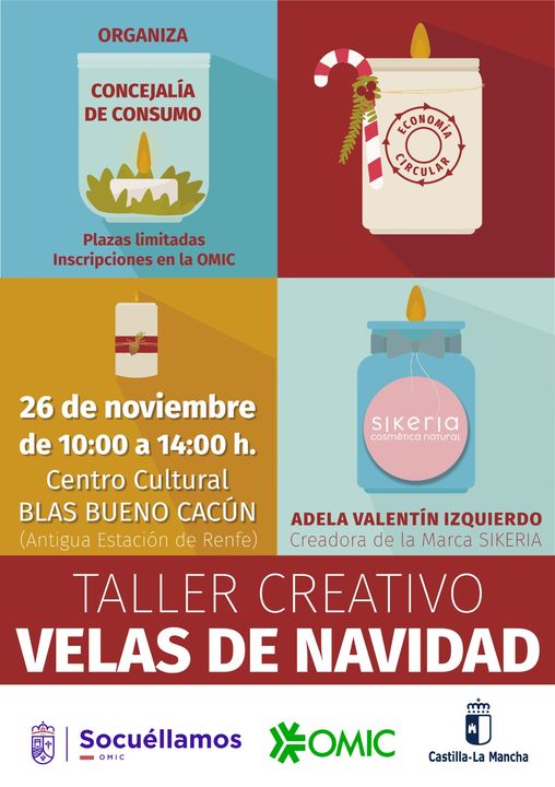 La Concejalía de Consumo a través de la OMIC ha presentado para esta Navidad el TALLER CREATIVO VELAS DE NAVIDAD en el que Adela Valentín, Creadora de la marca SIKERIA enseñará a fabricar originales velas navideñas. Dentro del concepto de Economía Circular.