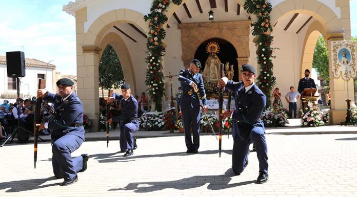 Unas fiestas que cuentan cada año con la participación del Ejército del Aire pues compartimos el amor y patronazgo de la Virgen de Loreto. Este año, además de escoltar a la imagen de la Madre del Hijo de Dios durante el recorrido de la procesión, volverán a ofrecer una exhibición al finalizar la misa del día 8. Delante de la ermita y ante la mirada de la Virgen la Patrulla de Honores del Ejército del Aire un año más demostrará sus habilidades mostrando su respeto hacia la Virgen que les protege.